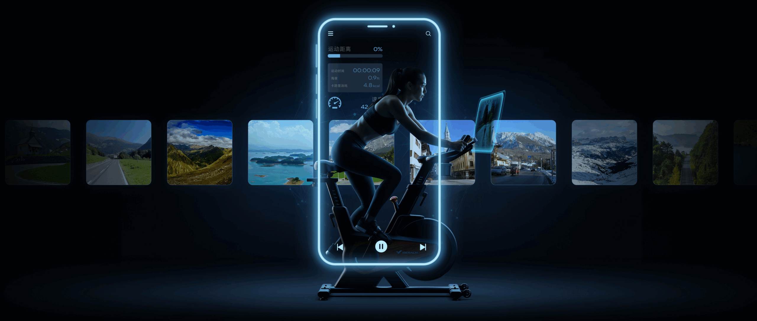 无论身在何处,都能仿佛置身世界各地的骑行赛道。4D体感技术,感受风景、坡度与速度的真实变化